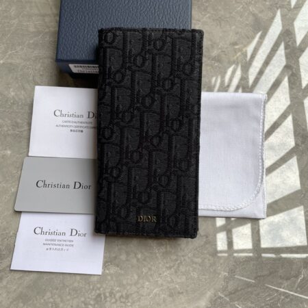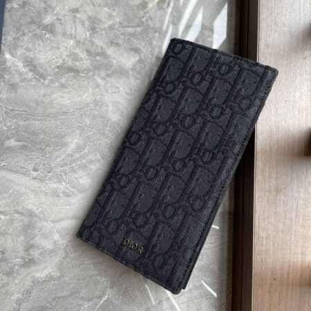 $994.00$218.40215 Saddle Vertical Long WalletBlack grain cowhide fine craftsmanship inlaid with black Oblique printed fabric, 500Number: 2ADBC330YKD_H03ESize: 18.8x9x2cm. This saddle vertical long wallet is a new product from Dior’s Spring 2025 collection, practical and stylish. Crafted with black Oblique printed fabric and paired with the same tone grain leather saddle shaped flip cover, it features a cash compartment, multiple card slots, and a zipper compartment. Elegant and spacious, it is an ideal companion for daily life.Main body: cotton, technology fabric, cowhide leather Inner lining: cowhide leather, technology fabric Internal zipper pocket 5 cash compartments 16 card slotsThe front is decorated with a metal clad brass Dior logo, and the interior is decorated with a Dior embossed logo with a dust bag inside