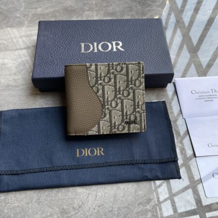 $905.00$209.90195 saddle double fold clipKhaki fine grained cowhide with khaki Oblique print, 900Number: 2ADBH076YKD_H57ESize: 11.5 × 9.5 × 3 (length x height x width) This saddle double fold clip is an elegant accessory that showcases Dior’s exquisite craftsmanship. Crafted with khaki fine grained cowhide inlaid with Oblique print, it highlights the classic saddle shape. The interior features a double layered cash compartment, two bill pockets, and eight card slots. Double fold style with Dior logo on the front, easy to fit into various pockets and handbags.Internally made of smooth cowhide with 8 card slots2 bill insertion pockets with double layered cash compartmentsThe front is decorated with a metal clad brass Dior logo, and the inside is decorated with a Dior embossed logo containing a dust bag.