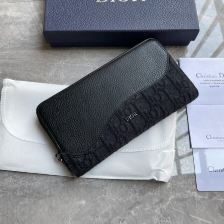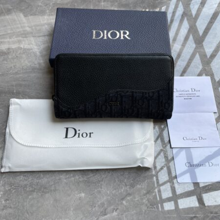 $882.00$186.30255 Saddle Zipper Long WalletBlack fine work inlaid grain leather paired with black .., 800 ID: 2ADBC315YKD_H03ESize: 19.8 × 11 (length × height) This saddle zipper style long wallet is low-key yet elegant. Crafted with black fine craftsmanship inlaid with grain leather and other materials, paired with Oblique printed fabric, reinterpreting the classic saddle shape, and showcasing the Dior logo on the front to enhance the style. The middle zipper compartment can hold coins, and the double-layer cash compartment and 12 card slots provide ample storage space. Elegant and spacious, it is an ideal companion for daily life. Main body: cotton, cowhide leather, technology fabric Inner material: cowhide leather, technology fabric Internal zipper compartment 12 card slots Double layer cash compartmentThe front is decorated with a metal clad copper alloy Dior logo, and the interior is decorated with a Dior embossed logo with a dust bag inside.