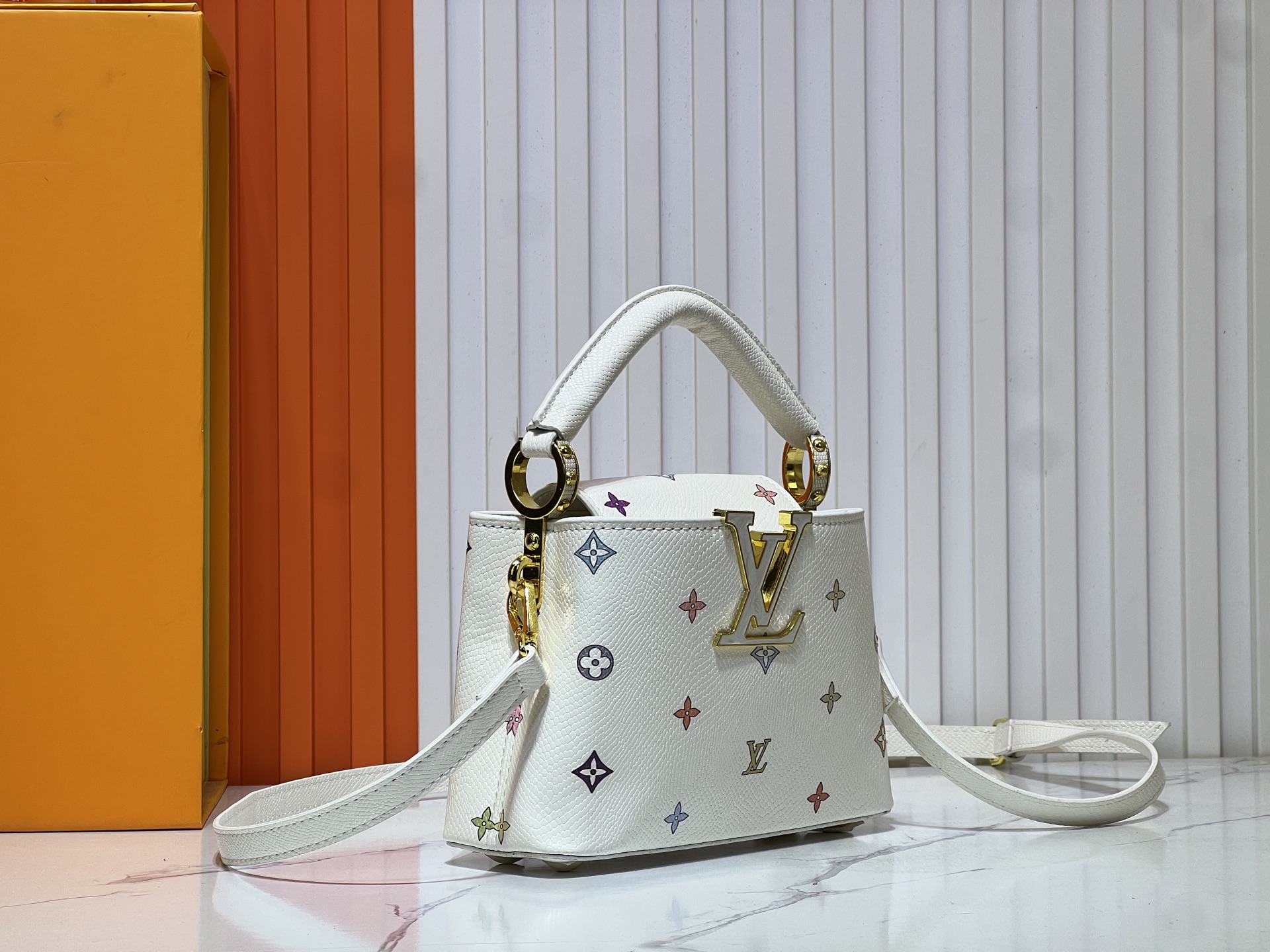 Exactly as pictured. Arrived on time. I did notice the outside pocket on the purse with the zipper was not completely a square when I put my phone in the pocket but my phone still fits well. Love the color and feels like it will last definitely worth the price! I had this in my cart for a long time bought myself a gift and I’m very happy with it.