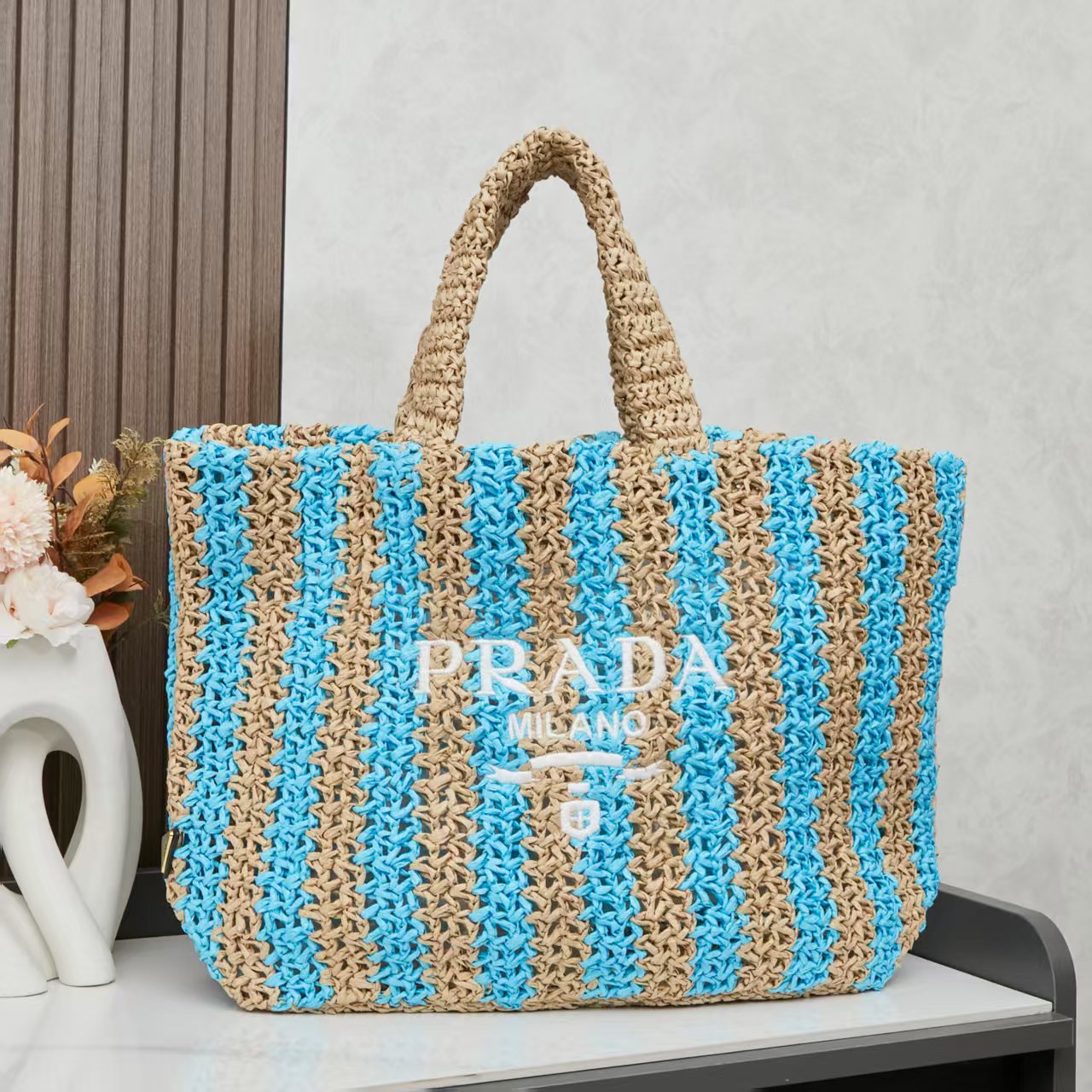 Prada new hollowed out straw woven tote! Lafite Grass~Shipping Full of artistic atmosphere~Lafite grass weaving is very solid and textured ♡ It can be paired with private servers in daily life without making mistakes. The natural style design of the item will not go out of style even if carried for several years. Exclusive style ❤️ Large size: 50x33x13, model number 2527